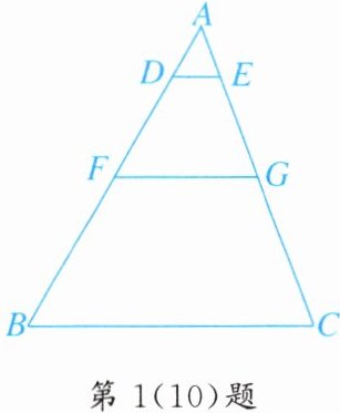 (10) 如图,在$\triangle ABC$中,$DE// FG// BC$,$AD:DF:FB = 1:2:3$,则$S_{四边形DFGE}:S_{四边形FBCG}= $