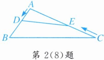 (8) 如图,在钝角三角形$ABC$中,$AB = 6\ cm$,$AC = 12\ cm$,动点$D从点A出发到点B$止,动点$E从点C出发到点A$止. 点$D运动的速度为2\ cm/s$,点$E运动的速度为4\ cm/s$. 如果两点同时运动,那么当以$A$,$D$,$E为顶点的三角形与\triangle ABC$相似时,运动的时间是(