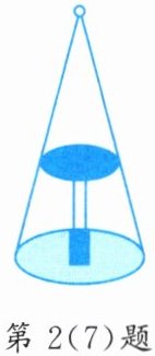 (7) 如图,这是圆桌正上方的灯泡(看作一个点)发出的光线照射到桌面后在地面上形成光影(圆形)的示意图. 已知桌面直径为$1.2\ m$,桌面离地面$1\ m$. 若灯泡离地面$3\ m$,则地面上阴影部分的面积为(