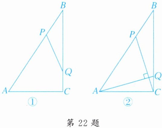 ∴当t = 1s或$\dfrac{32}{41}$s时,△BPQ与△ABC相似.