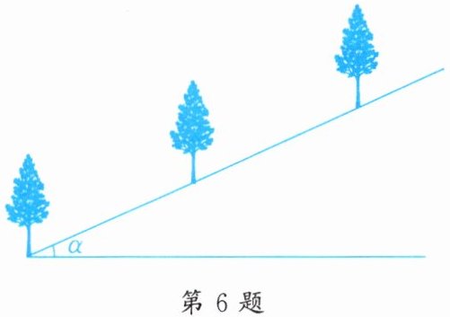 6. 如图,先锋村准备在坡角为$\alpha$的山坡上植树,要求相邻两棵树之间的水平距离为$5\mathrm{m}$,那么相邻两棵树的坡面距离为(