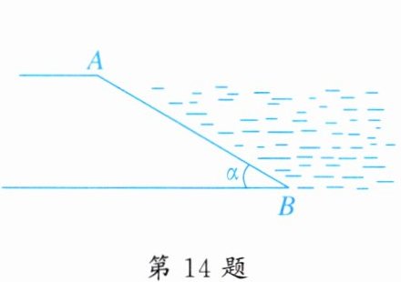 14. 如图,一水库迎水坡$AB的坡度i = 1:\sqrt{3}$,则该坡的坡角$a = $