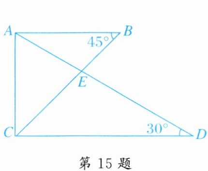15. 将一副三角尺按如图所示方式叠放在一起,则$\frac{BE}{EC}$的值是______。