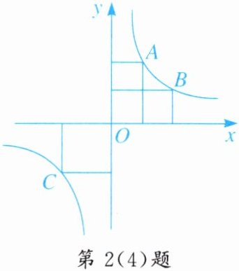 (4)如图,$ A $,$ B $,$ C $ 为反比例函数图像上的三个点,分别从点 $ A $,点 $ B $,点 $ C $ 向 $ x $ 轴,$ y $ 轴作垂线,构成三个矩形,它们的面积分别是 $ S_1 $,$ S_2 $,$ S_3 $,则 $ S_1 $,$ S_2 $,$ S_3 $ 的大小关系是 (