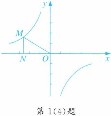 (4)如图,$ M $ 是反比例函数 $ y = \frac{k}{x} $ 图像上的一点,$ MN $ 垂直于 $ x $ 轴,垂足是 $ N $,若 $ S_{\triangle MON} = 2 $,则 $ k $ 的值为