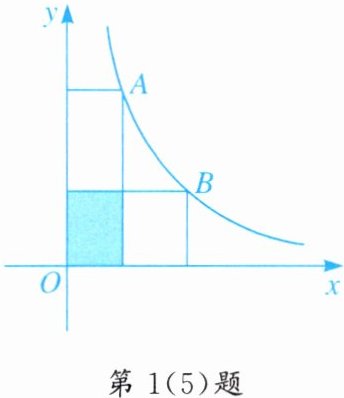 .(5)如图,$ A $,$ B $ 是反比例函数 $ y = \frac{6}{x} $ 图像上的点,分别过点 $ A $,点 $ B $ 作 $ x $ 轴和 $ y $ 轴的垂线,若图中阴影部分的面积为 $ 2 $,则两个空白矩形面积的和为