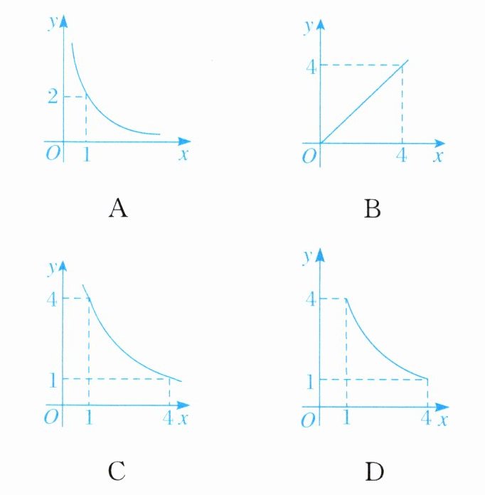 (4) 面积为 $ 2 $ 的直角三角形一直角边长为 $ x $,另一直角边长为 $ y $,则 $ y $ 与 $ x $ 的变化规律用图像可大致表示为 (