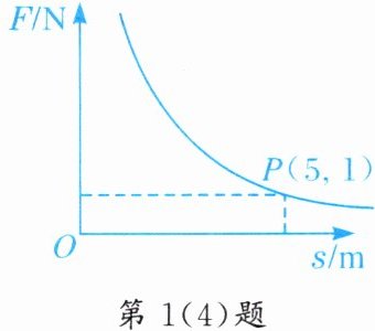 (4) 在对物体做功一定的情况下,力 $ F (N) $ 与此物体在力的方向上移动的距离 $ s (m) $ 成反比例函数关系,其图像如图所示,点 $ P (5, 1) $ 在图像上,则当力达到 $ 10 \, N $ 时,物体在力的方向上移动的距离是