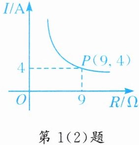 .(2) 某种蓄电池的电压为定值,使用此电源时,电流 $ I (A) $ 与可变电阻 $ R (\Omega) $ 之间的函数关系如图所示,当用电器的电流为 $ 10 \, A $ 时,用电器的可变电阻为