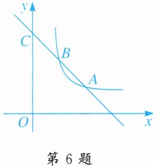 6. 如图,函数$y_1 = k_1x + b的图像与函数y_2= \frac{k_2}{x}(x>0)的图像交于A$,$B$两点,与$y轴交于点C$。已知点$A的坐标为(2,1)$,点$C的坐标为(0,3)$。