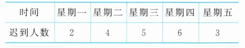 (4) 小明是学生会的干部,上周值周时他对迟到学生人数进行了统计,统计结果如下表: