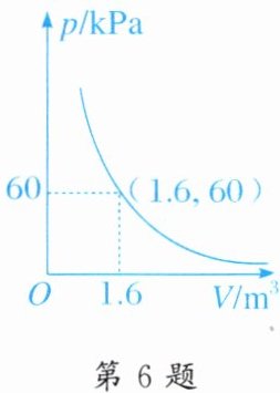 6. 某气球内充满了一定质量的气体,当温度不变时,气球内气体的气压 $p(kPa)$ 是气体体积 $V(m^3)$ 的反比例函数,其图像如图所示,当气球内的气压大于 $120 kPa$ 时,气球将爆炸,为了安全起见,气球内气体的体积应(