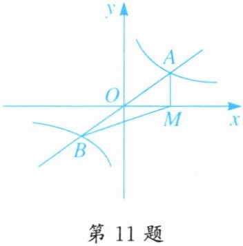 11. 如图,直线 $y = mx$ 与反比例函数 $y = \frac{k}{x}$ 的图像交于 $A$,$B$ 两点,过点 $A$ 作 $AM \perp x$ 轴,垂足为 $M$,连接 $BM$,若 $S_{\triangle ABM} = 2$,则 $k$ 的值是(