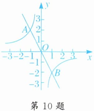 10. 如图,正比例函数 $y_1 = k_1x$ 和反比例函数 $y_2 = \frac{k_2}{x}$ 的图像交于 $A(-1,2)$,$B(1,-2)$ 两点,若 $y_1 < y_2$,则 $x$ 的取值范围是(