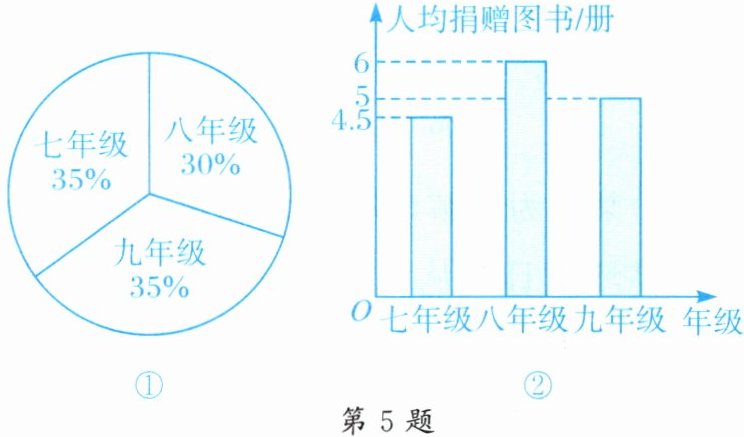 (2)九年级的学生人数为1 200×35% = 420,估计九年级共捐赠图书为420×5 = 2 100(册).