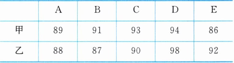 (1)$\overline{x}_{乙}=\frac{88+87+90+98+92}{5}=91$,中位数是90.
