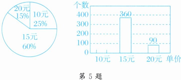 5. 某商店有单价分别为$10$元,$15$元,$20$元的三种文具出售,该商店统计了$2021年3$月份的销售情况,并绘制统计图如下: