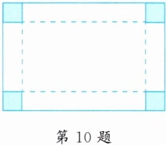 10. 如图是一块矩形铁皮,将四个角各剪去一个边长为 2 dm 的正方形后,剩下的部分做成一个容积为 $90dm^{3}$ 的无盖长方体箱子,已知长方体箱子底面的长比宽多 4 dm,求矩形铁皮的面积。