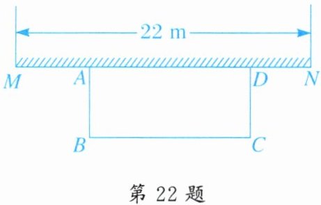 解:设$AB=x\ m$,则$BC=(50-2x)\ m$.根据题意,得$x(50-2x)=300$,解得$x_{1}=10,x_{2}=15$.当$x=10$时,$BC=50-2×10=30>22$,故$x_{1}=10$不合题意舍去.当$x=15$时,$BC=50-2×15=20(m)$.答:可以围成$AB$的长为15m,$BC$的长为20m的矩形花园.