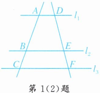 (2)如图,$l_{1}// l_{2}// l_{3}$,若$BC = 3$,$\frac{DE}{EF}= 2$,则$AB= $