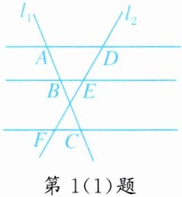 (1)如图,$AD// BE// CF$,直线$l_{1}$,$l_{2}与这三条平行线分别交于点A$,$B$,$C和点D$,$E$,$F$。若$\frac{AB}{BC}= \frac{2}{3}$,$DE = 6$,则$EF= $
