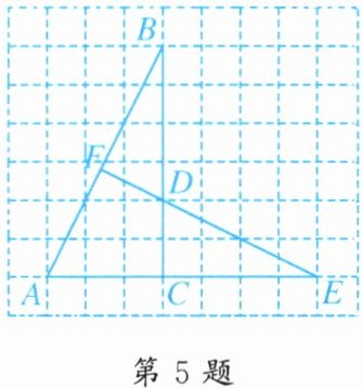 5. 如图,网格纸中的每个小正方形的边长都是1,小正方形的顶点叫做格点. $\triangle ACB和\triangle DCE$的顶点都在格点上,$ED的延长线交AB于点F$. 求证:$EF \perp AB$.