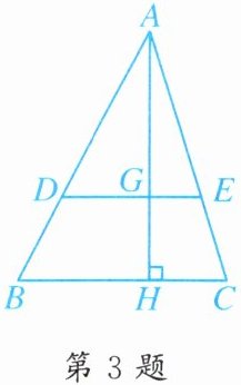 3. 如图,在△ABC 中,DE//BC,AH⊥BC,H 为垂足,DE = 10,BC = 15,AG = 12. 求线段 AH 的长.