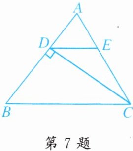 7. 如图,在 $\triangle ABC$ 中,$AB = 14$ cm,$\frac{AD}{BD}= \frac{5}{9}$,$DE // BC$,$CD \perp AB$,$CD = 12$ cm,求 $\triangle ADE$ 的面积和周长.