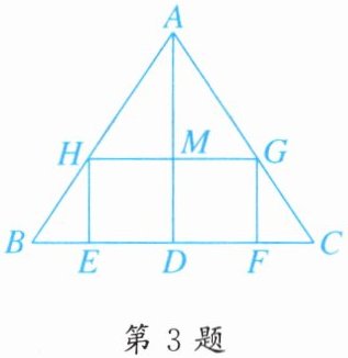 3. 如图,△ABC 是一张锐角三角形的硬纸片,AD 是边 BC 上的高,BC = 40 cm,AD = 30 cm,从这张硬纸片上剪下一个长 HG 是宽 HE 的 2 倍的长方形 EFGH,使它的一边 EF 在 BC 上,顶点 G,H 分别在 AC,AB 上,AD 与 HG 的交点为 M.