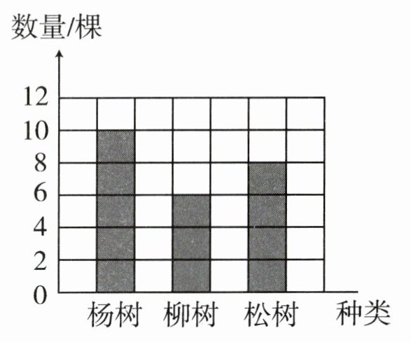 6. 右图为某班在植树活动中栽种的树木数量的条形图,根据条形图可知,栽种的杨树比柳树多(