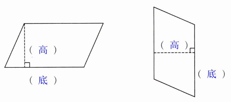 二、分别画出下面平行四边形指定底上的高。