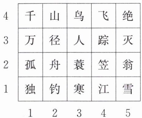 (1)“万”的位置用数对(1,3)表示,“舟”的位置用数对( , )表示,“绝”的位置用数对( , )表示,“鸟”的位置用数对( , )表示。