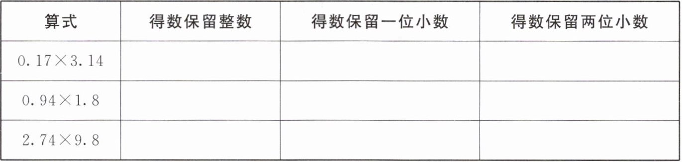 算式 得数保留整数 得数保留一位小数 得数保留两位小数