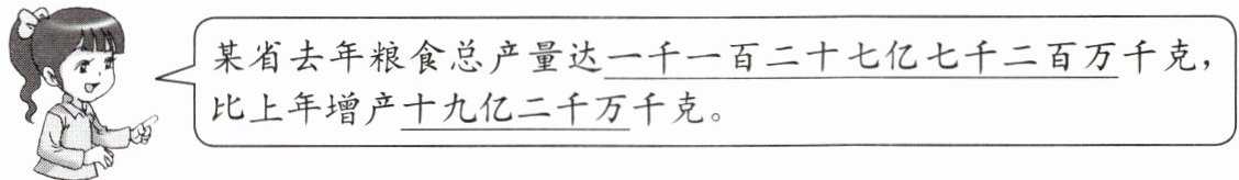 某省去年粮食总产量达一千一百二十七亿七千二百万千克,比上年增产十九亿二千万千克。