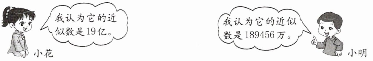 用“四舍五入”法,将 1894562300 改写成用“亿”作单位的数约是_____亿,改写成用“万”作单位的数约是______万,所以他们说得______。