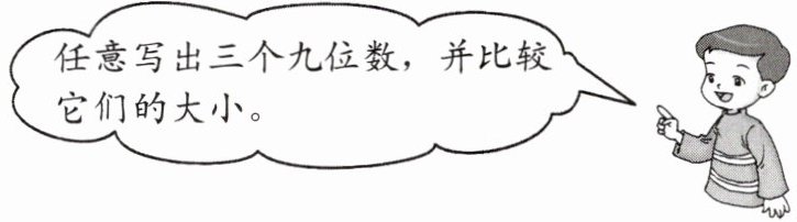 任意写出三个九位数,并比较它们的大小。