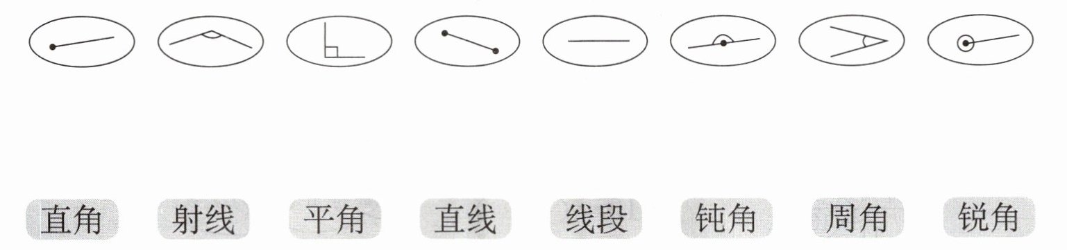 直角 射线 平角 直线 线段 钝角 周角 锐角