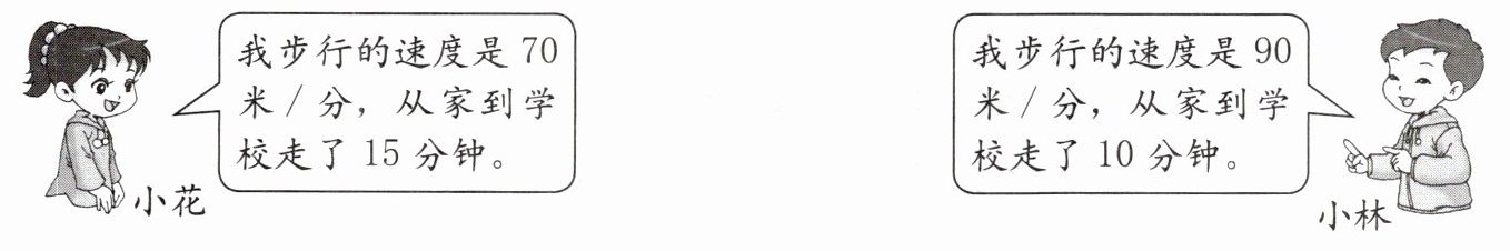 5. 小花家、小林家和学校在同一条街道上。谁家离学校近些?他们两家相距多少米?