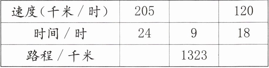 | 路程/千米 | 4920 | 1323 | 2160 |