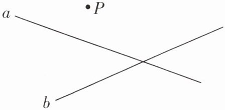 3. 过点$P分别画出直线a和直线b$的垂线。通过测量可知,$P$点距离直线( )较近。