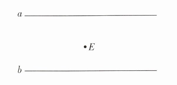2. 下图中,$a// b$,请经过点$E分别画出垂直于直线a$、$b$的垂线,并测量$a$、$b$间的距离。直线$a$、$b$间的距离是( )厘米。