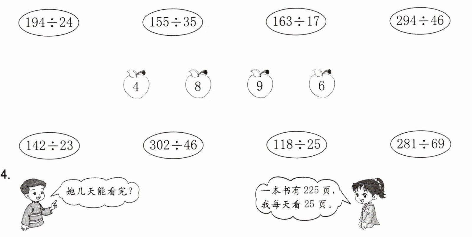 3. 194÷24—8;155÷35—4;163÷17—9;294÷46—6;142÷23—6;302÷46—6;118÷25—4;281÷69—4。
