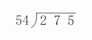 $54×5 = 270$,$275 - 270 = 5$,所以 $275÷54 = 5\cdots\cdots5$。