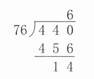 \begin{array}{r}76\enclose{longdiv}{440} \\\underline{456} \\14\end{array} $