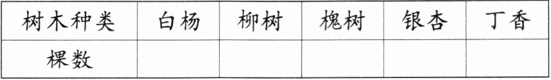(4)柳树比白杨少( )棵,比槐树多( )棵。校园里一共种了( )棵树。