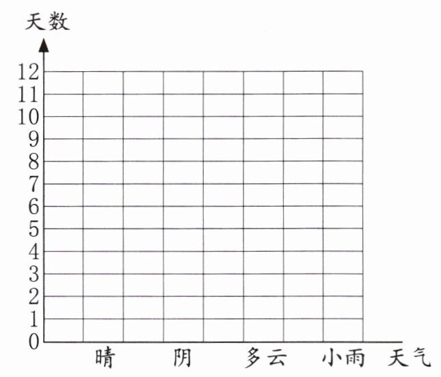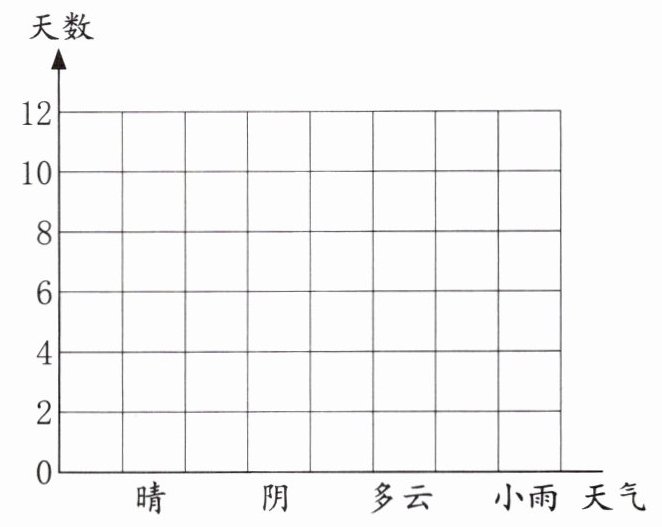(4) 用第一个图表示比较合适,因为数据中最小的数是2,用每格代表1天能更清晰准确地表示各天气的天数,第二个图每格代表2天,小雨的2天只能涂1格,不够直观。