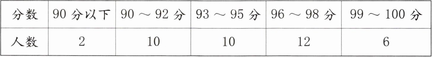 |分数|90分以下|90~92分|93~95分|96~98分|99~100分|