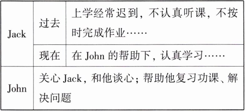 |John| |关心Jack,和他谈心;帮助他复习功课、解决问题|
