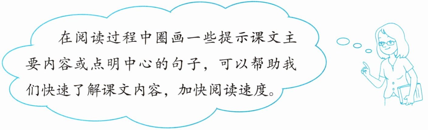 在阅读过程中圈画一些提示课文主要内容或点明中心的句子,可以帮助我们快速了解课文内容,加快阅读速度。