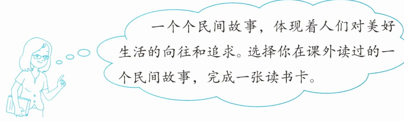 一个个民间故事,体现着人们对美好生活的向往和追求。选择你在课外读过的一个民间故事,完成一张读书卡。